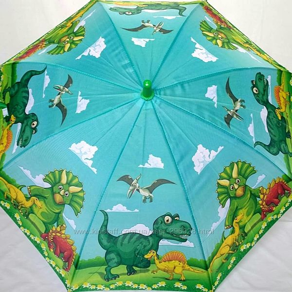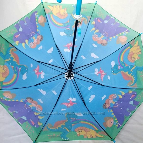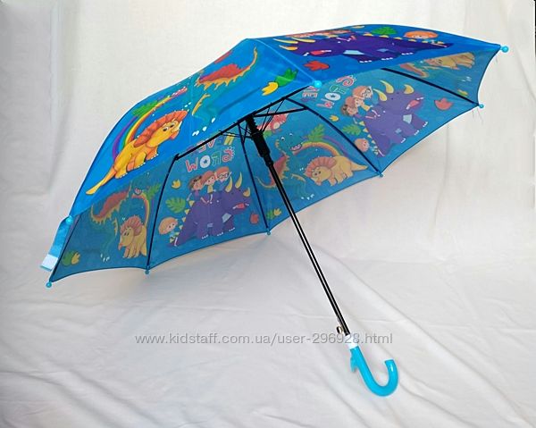 Новый яркий и красочный зонт-трость с динозаврами от 5 до 10 лет со свистком . Тип зонта: ТростьМеханизм: Полуавтомат