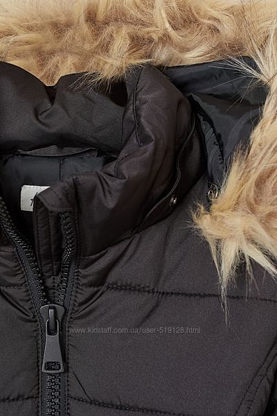 В наявності утеплені курточки для дівчат, фірми H&M (Швеція)Утеплена куртка з стьобаної тканини з легким блиском. Комірець стійка, утеплений зйомний капюшон з оторочкою штучним хутром та блискавка з захистом підборіддя зпереду. Передні кишені на кнопці, кишеня з клапаном на кнопці на рукаві. Внутрішні трикотажні манжети. На підкладці. Утеплювач поліестер.
