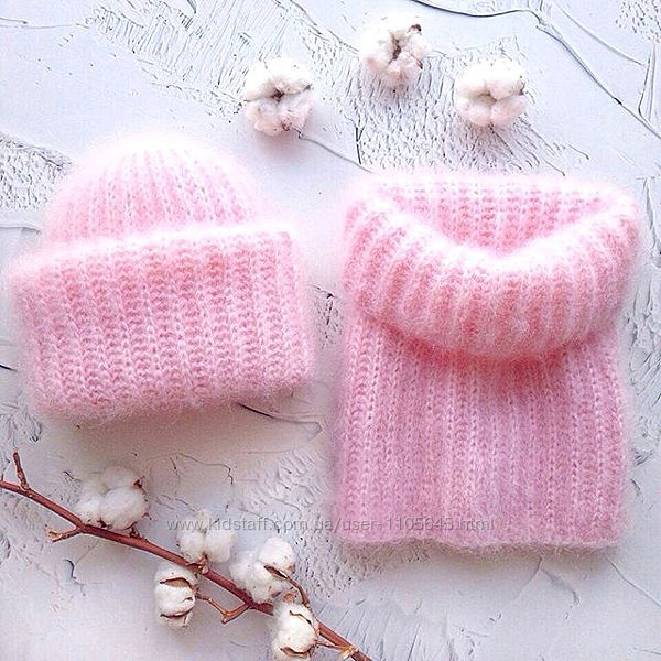 Подробное описание: пушистый мохеровый комплект двойка Шапка ТакОри Снуд баф Розовый