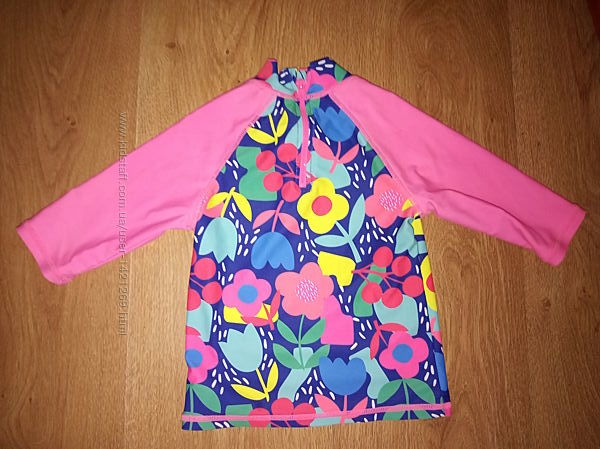 Футболка, очень красиво смотрится, для плавания. Сток. Удобная, устойчивая к зацепкам ткань. Из достоинств можно отметить - UPF 50 защиту от солнца и более быстрое высыхание в сравнении с другими тканями. Под ручками 26 см, длина рукава от шеи тоже 26 см, длина футболки 34 см. Удобно одевать, когда подгорели ручки. Доставка Укрпочта, Новая почта.