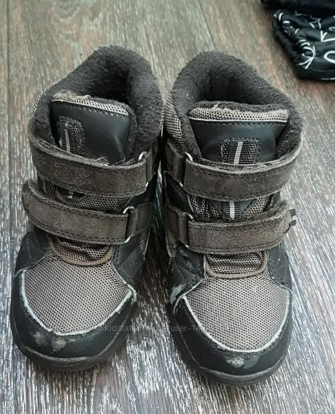 В подарок 2 пары носков Conte kids + 1 гетры + 1 пара носков с махрой + термоботинки Lassie Tec. Размер 27. Длина по стельке 17,1 см. Не промокают. Нюанс: местами потрескался внешний синтетический материал (видно на фото). Но тем не менее они прекрасно себя ведут в носке.