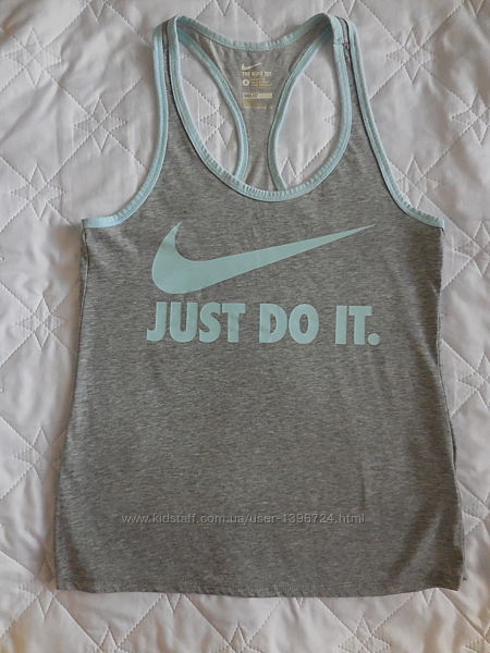Спортивная майка NIKE серого цвета. Размер указан S Длина от плеча 61 см. Ширина в районе груди 40 см., тянется до 48 см. Ткань 58% хлопок, 42% полиэстер . Приятная к телу, тянется. Состояние хорошее, без дефектов. Надпись без трещин.