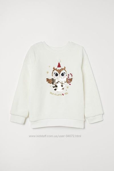 H&M Мягкий плюшевый джемпер с пайетками для 3-6 и 8-10 лет