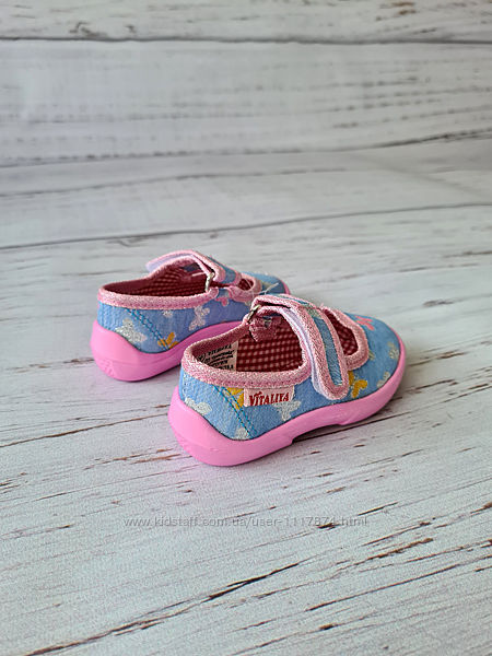 Тапочки VitaliyaОчень красивые, легкие, мягкие и удобные детские тапочки. Они дарят детским ножкам комфорт дома и на улице, позволяют им дышать и снимают нагрузку во время детских игр. Застежка на липучке позволяет регулировать полноту ножки.