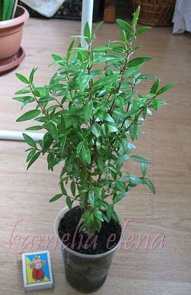 Мирт - растение, все части которого содержат эфирные масла. Очищает и обогащает воздух в помещении. Цветет белыми душистыми цветками, легко формируется. Очень декоративно выглядит. После цветения образует ягоды, которые имеют сладковатый вкус и хвойный аромат, их можно есть.Передам в Люботине.