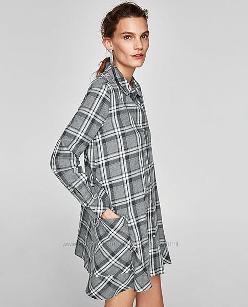 Подробное описание: Стильное платье рубашка в клетку ZARA BASIC DENIM.