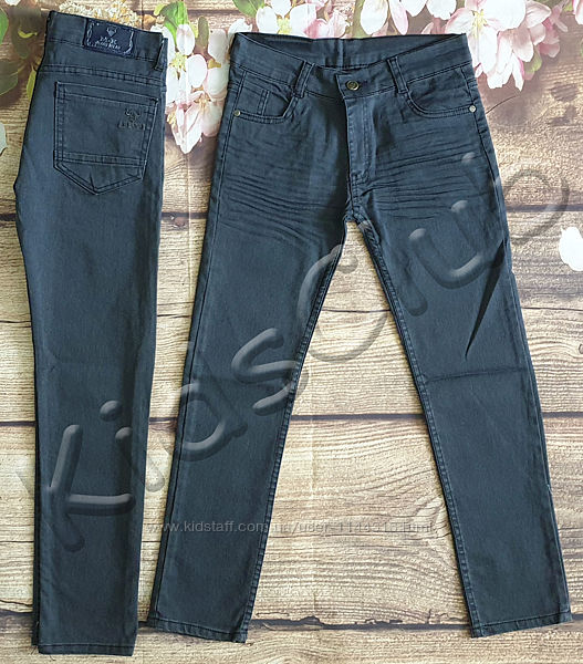 Штаны, джинсы на мальчика приблизительно на рост от 134 до 158. Ткань хлопок с добавлением лайкры, тянется, плотность средняя. Утяжки нет. Штаны немного зауженные к низу. Сезон: деми, лето .Расцветки: черные, серые, хаки и светло-синие.
