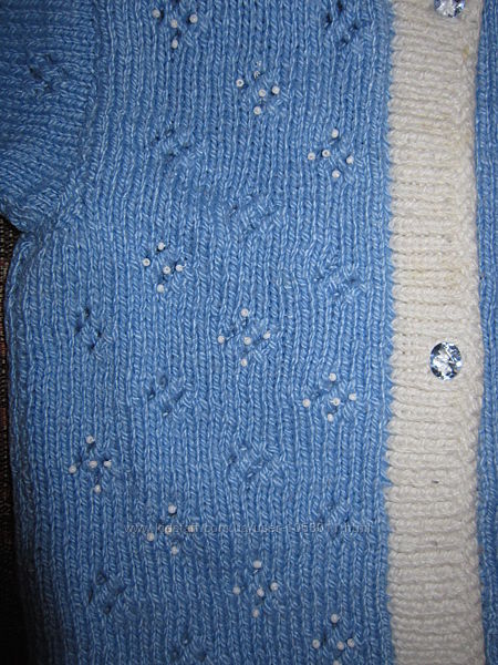 Вязаная кофточка своими руками. Состав пряжи не подскажу, но относили 2 сезона и ни одного катышка нет. Никаких нюансов, в состоянии новой вещи.
