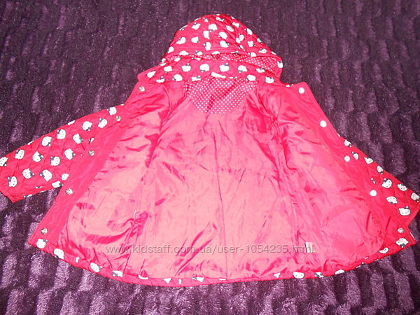 Продам куртку для девочки на рост 110-116 см., на возраст 4-6 лет.1. Куртка красная с Китти на рост 110-116 см., на возраст 5-6 лет "Tu": длина рукава - 41,5 см., плечико - 7,5 см., ширина под рукавчиками - 46,5 см., длина от плечика - 47 см. Застегивается на кнопочки, с капюшоном (внутри капюшона подкладка), есть поясок (регулируется по ширине), впереди два кармашка с бантиками, внутри куртки синтепончик. Материал: 100% полиэстер. Цена: 200 грн.