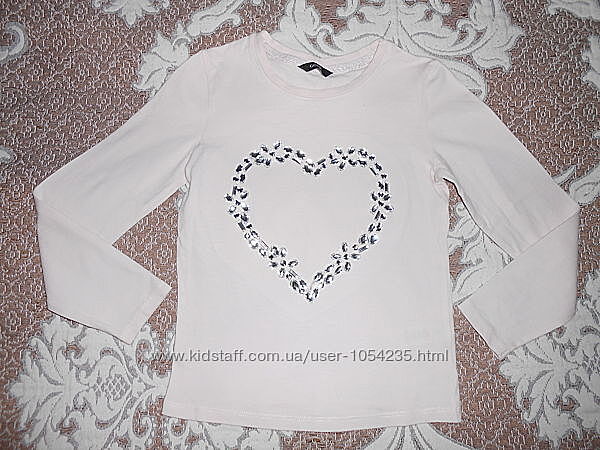 5. Регланчик розовый с сердцем на рост 116-122 см., на возраст 6-7 лет "George": длина рукава - 44 см., плечико - 7 см., ширина под рукавчиками - 33,5 см., длина от плечика - 45,5 см. Горловинка на широкой резиночке, впереди аппликация из камушков. Материал: 100% хлопок. Цена: 45 грн.