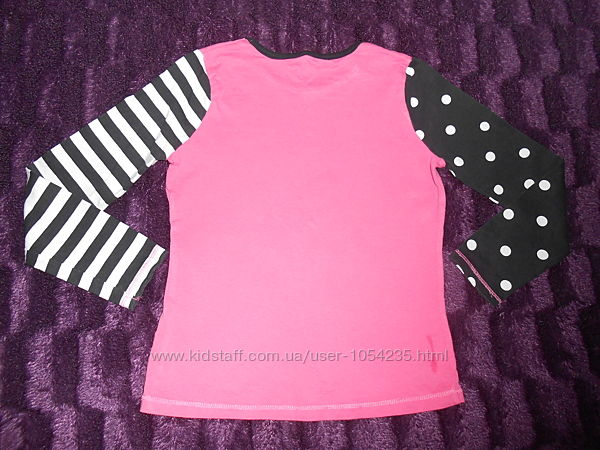 Продам регланчики для девочки на рост 122-128 см., на возраст 7-8 лет.1. Регланчик малиновый с рукавами в полоску и горох на рост 122-128 см., на возраст 7-8 лет "George": длина рукава - 44,5 см., плечико - 6 см., ширина под рукавчиками - 37 см., длина от плечика - 46 см. Горловинка на резиночке, впереди разноцветная блестящая аппликация. Материал: 100% хлопок. Цена: 45 грн.