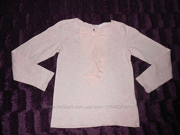 3. Регланчик розовый с бантом на рост 122-128 см., на возраст 6-8 лет "H&M": длина рукава - 42 см., плечико - 5,5 см., ширина под рукавчиками - 32 см., длина от плечика - 42 см. Застегивается сзади на пуговичку, горловинка на широкой резиночке, впереди оборочка с бантиком. Материал: 100% полиэстер. Цена: 45 грн.