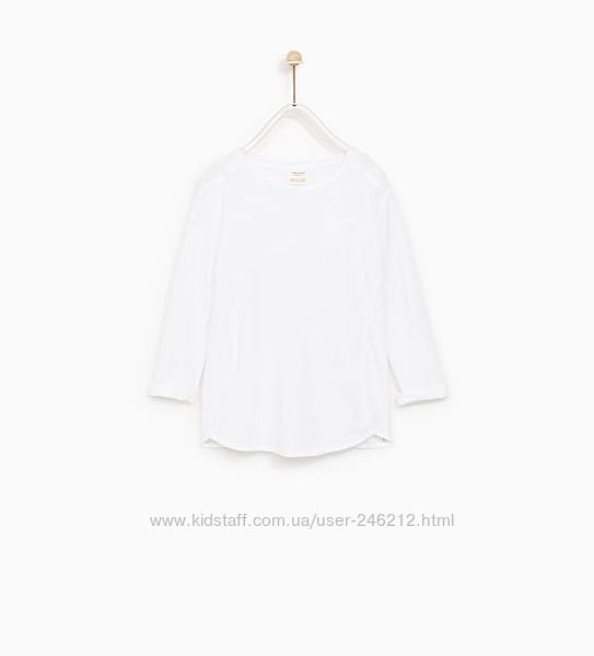 Белоснежная блуза -реглан Zara на девочку 9 лет .Круглый вырез , длинные рукава, спереди кармашек с вышивкой .