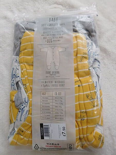 18-24м. Человечки хлопок, в комплекте 3 шт, George. В наличии