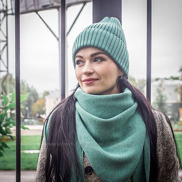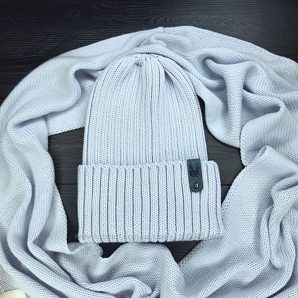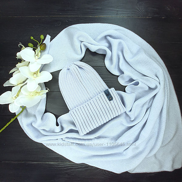 Подробное описание: бронь Комплект двійка Шапка гумка та Бактус/хустинка ніжно блакитний
