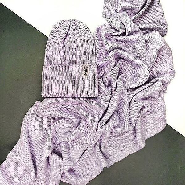 Подробное описание: бронь Комплект двійка Шапка гумка та Бактус/хустинка пастельний ліловий