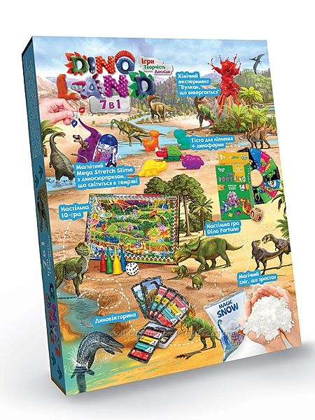 Подробное описание: Подарочный набор Dino Land 7в1 Игры, творчество, опыты