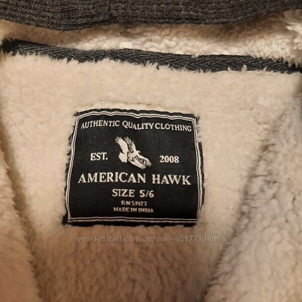 Толстовка с меховой подкладкой шерпа на 5-6 лет на рост 122-128 см. Тёплая и толстая, в реальности лучше, чем на фото. Рукава на трикотажной подкладке. Куплена в Америке. В идеальном состоянии.