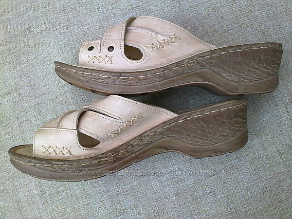 Продаю женские кожаные шлепанцы польского производителя fenuzzi, размер 37, длина стельки 24 см, на узкую ногу, легкие и удобные, отличного качества. Кожа мягкая и комфортная. Внутри тоже мягонькие и удобные.Есть Viber и Telegram - 099 33 58 476.