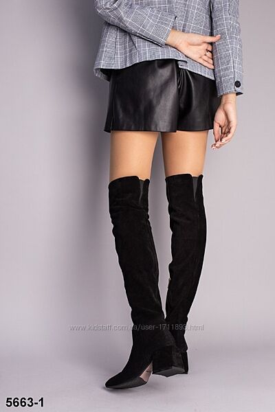 Подробное описание: Женские натуральные кожаные замшевые сапоги ботфорты на среднем каблуке