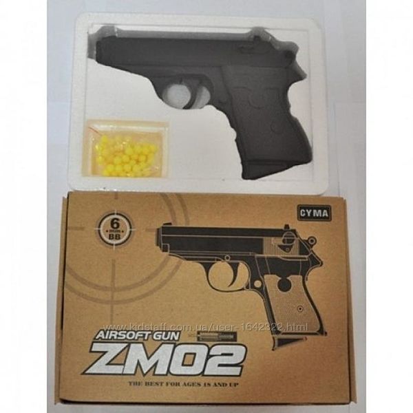Игрушечный пистолет ZM02 способен вести огонь пластиковыми шариками 6 мм. Чтобы сделать выстрел следует, зарядить магазин вмещающий 10 пулек, взвести затворный механизм и можно стрелять.