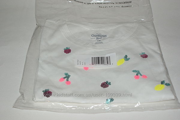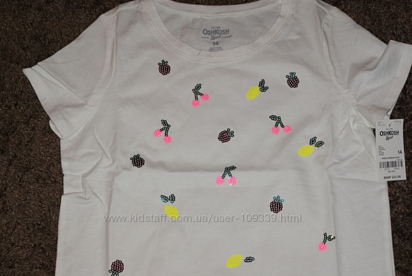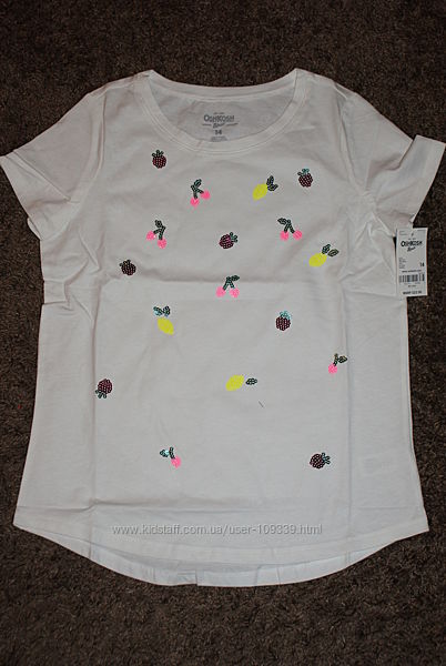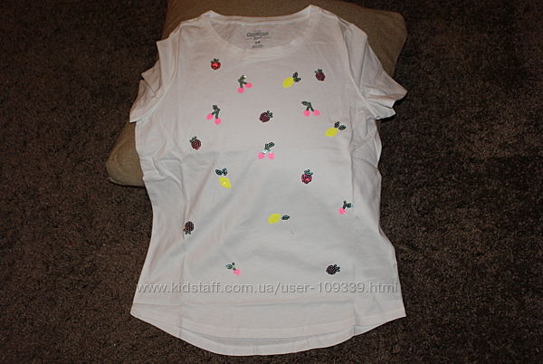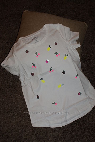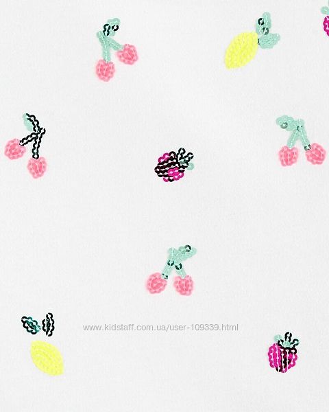 Подробное описание: Белая футболка , carters украшенная яркими фруктами из пайеток