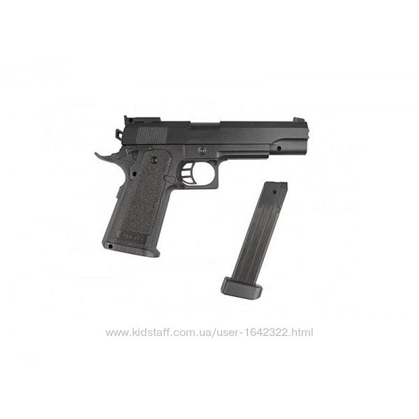 Детский пистолет ZM05 металлПистолет металл + пластик ZM05 пистолет ZM 05 визуально похож на настоящий стреляет пластиковыми шариками d=6мм Пистолет выполнен из качественного утяжеленного пластика для стрельбы необходимо передёрнуть затвор пистолета В магазине помещается 9 пуль Характеристики: Пистолет выполнен из качественного пластика