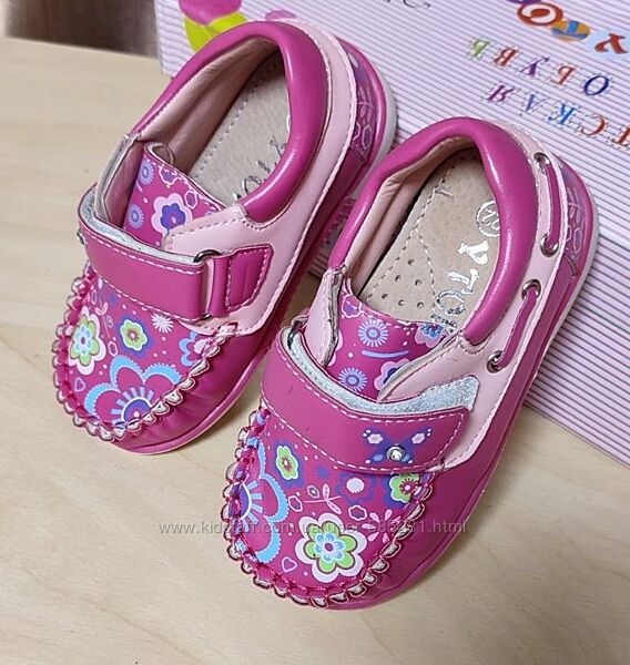 красивые, комфортные, легкие и очень мягкие мокасины, декорированы цветочным принтом, бабочкой со стразой на застежке и декоративной шнуровкой, на ножке фиксируется перепонкой на липучке, что позволяет регулировать полноту и подъем, анатомическая стелька с супинатором и перфорацией - кожа, качественное исполнение, мокасины изготовлены из кожзама, размеры 20-25-