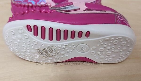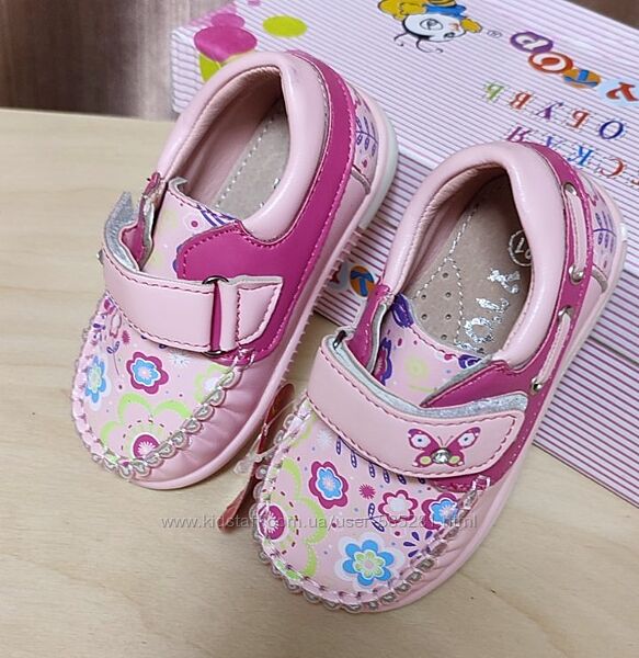 красиві, комфортні, легкі та дуже м´які мокасини, декоровані квітковим принтом, метеликом зі стразою на застібці та декоративним шнурівкою, на ніжці фіксується перетинкою на липучці, що дозволяє регулювати повноту та підйом, анатомічна устілка з супінатором та перфорацією - шкіра, якісне виконання виготовлені зі шкірозамінника, розміри 20-25