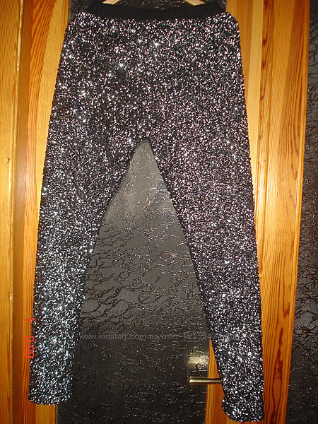 Эффектные брюки от Moss Copenhagen, на трикотажной подкладке (полиэстер 65 и вискоза35) , плотно расшиты блёстками (всё целое,на месте), очень качественно. Пояс на широкой резинке,затягивается текстильной лентой. Указан размер 1, смотрите замеры на фото. Брючки чуть пружинят.Другие объявления продавца