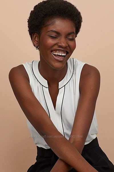 Топ из мягкого, слегка крепированного трикотажа с v-вырезом сверху и продольным швом по полочке. Состав: 95% полиэстер, 5% эластан Размер XS, S Большемерит
