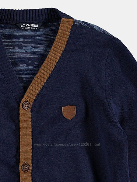 Синий Кардиган-122-Окантовка/Налокотники-Waikiki-Кофта на молнии-110см