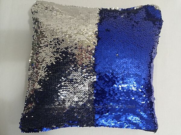 Одна сторона наволочки — двусторонние пайетки, вторая — ткань-замша, очень приятная на ощупь. Продается только наволочка без подушки. В наличии фото 5,6,8,9,13.