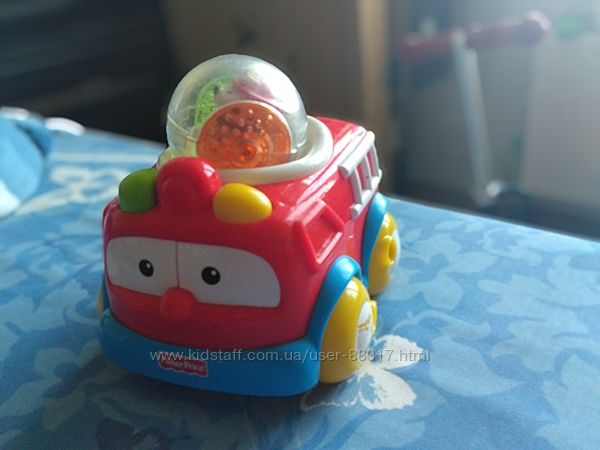 Машинка fisher-price. машинку нужно толкнуть, по ходу шарик крутится и впереди кубики подимаются-опускаются. нет звуковых и световых эффектов. от 6 мес. впринципе, можно от 3-х, т.к. мелких деталей нет. шарик неразборной, ну попробовать погрызть его можно:) если в рот войдетДругие объявления продавца