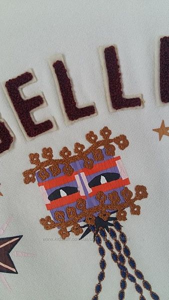 Классный фирменный батник молочного цвета для девочек 13-15 лет, подойдет также девушкам с размером XS/S.Декорирован принтом и нашивками.