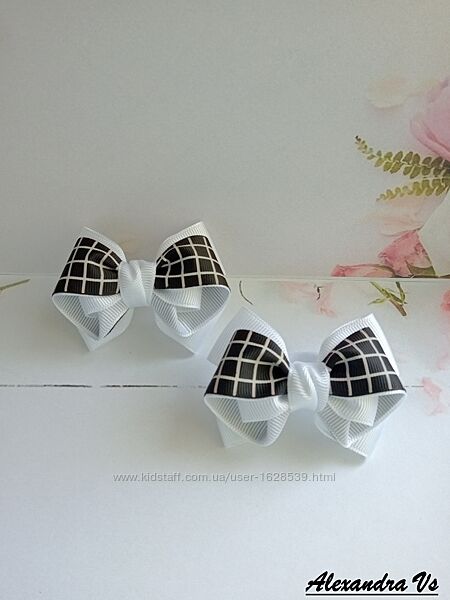 Школьные бантики из репсовой ленты. Длина бантика 7,5 - 8 см. Надежно закреплены на нейлоновые бесшовные резинки. В наличии. Цена под фото указана за пару.