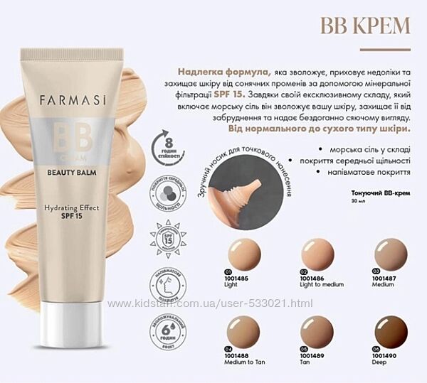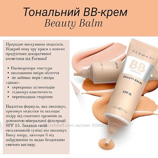 Тональный BB Cream от FarmasiВ наличии тон: № 1, 2, 3, 4.