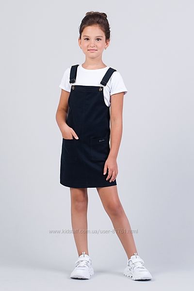 Модель джинсового классического сарафана ТМ "Zironka" ( 97% хлопок, 3% эластан) . Данный сарафан выполнен из плотного джинса темно-синего цвета, поэтому отлично подойдет на каждый день. Бретели регулируются, что очень удобно, учитывая быстрый рост ребенка. Спереди в сарафане предусмотрено два накладных кармана для мелочей. Модель прямого кроя будет хорошо смотреться на девочке любой комплекции. Цена - 550 грн.Размер - 164 см