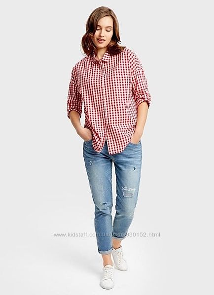 Бавовняна сорочка Ostin в дрібну клітку.Крій широкий прямий, стиль Oверсайз, рукав 3/4.
