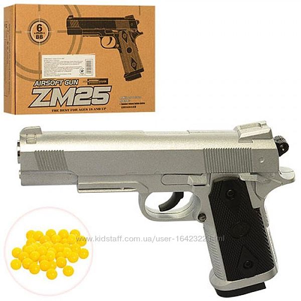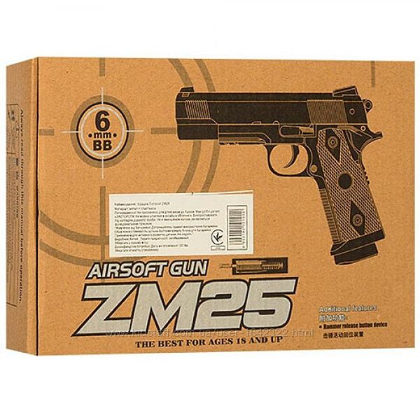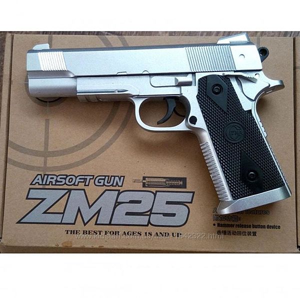 Детский пистолет ZM25 металлКаждый мальчик рано или поздно просто мечтает получить в подарок игрушечный пистолетик и наполнить свои игры новыми приключениями и достижениями. Пистолет ZM25 лучшее решение для таких забав! Пистолет полностью металлический (механизм и корпус), но так же есть пластиковая накладка на ручке пистолета, обойма и курок выполнены из прочного пластика. Пистолет имеет полное сходство с настоящим оружием!