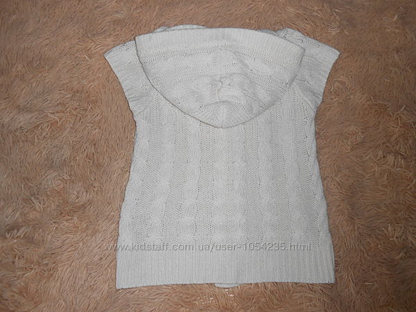 2. Жилеточка вязаная бежевая на рост 128 см., на возраст 7-8 лет "YD": ширина под рукавчиками - 35 см., длина от плечика - 51 см. Застегивается на большие пуговички, с капюшоном (внутри капюшона флисовая подкладка). Материал: 100% акрилик. Цена: 80 грн.