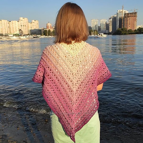 Шаль ручной работы, связана крючком из град иентной пряжи Yarnart flowers. Состав: хлопок 55%, ПА 45%. Размеры: ширина 185 см , высота 77 смДругие объявления продавца