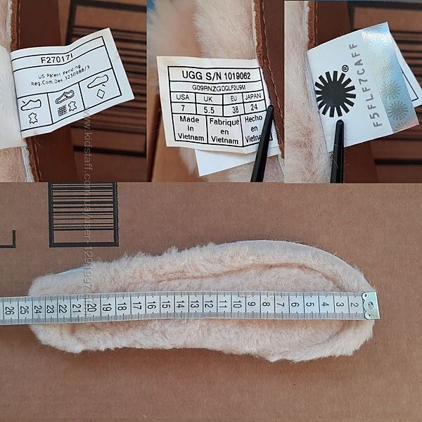 Размер: US7, EUR 38 (наш 36/37) - полная длина стельки 24см, но очень плотный и толстый мех, подойдут на стельку 23,5см.