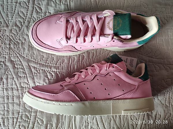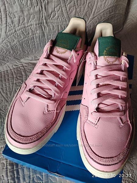 Кроссовки Adidas Originals Supercourt, оригинал с Америки. Сделаны по Вьетнаме. Натуральная кожа со вставками из натуральной замши. В наличии размер us8/uk6.5/на стопу 25см Подойдут на широкую и средней полноты стопу. Очень красивый розовый цвет.