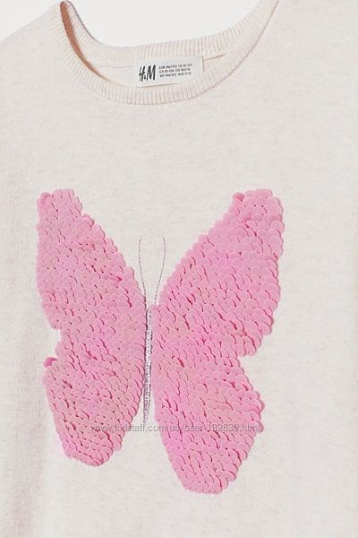В наличии стильные нарядные джемпера H&M для девочек.Хлопковый джемпер тонкой вязки с длинным рукавом и узором из пайеток спереди.