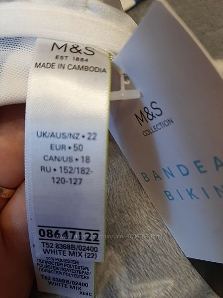 КОЛЛЕКЦИЯ M&S Лиф бикини-бандо в полоску р.22 с подкладкой