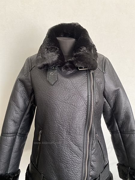Стильная дубленка-авиатор известного американского бренда BCBG.Искуственная кожа,размеры XS(идёт на S)и S(идёт на M).Очень стильно смотрится.Замеры XS:плечи 38,5-39,от подмышки до подмышки 48,Длина рукава от плеча 62,Длина по спинке 68,ширина по низу 54.Замеры S:плечи 40,от подмышки до подмышки 51,Длина рукава 63,Длина по спинке 70,ширина по низу 56