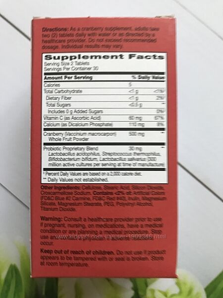 2 таблетки содержат эквивалент 1 стакана клюквенного сока