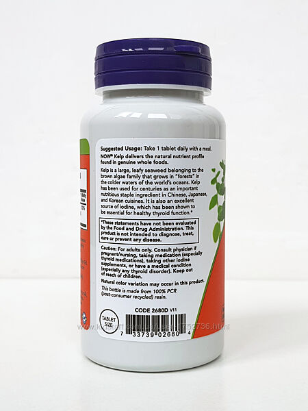 Подробное описание: Келп Now Foods Kelp, йод з бурих водоростей, 150 мкг, 200 таблеток