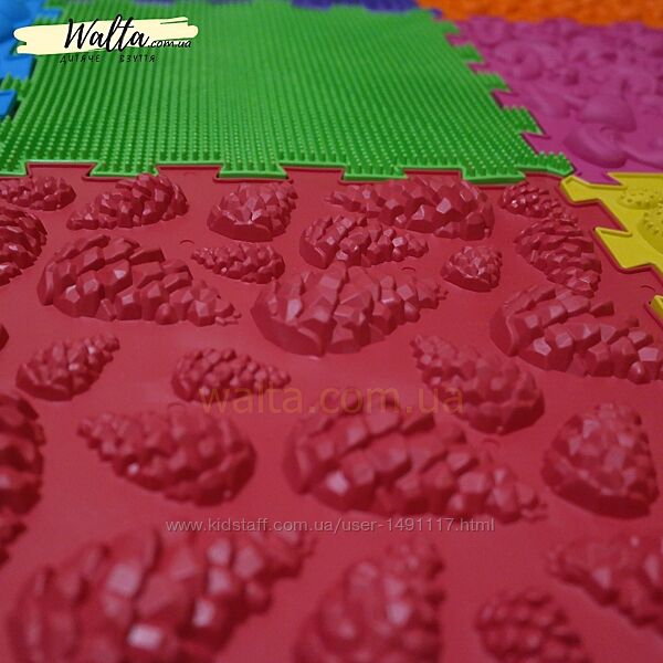 килимок масажний ортопедичний мікс: шишки, їжачки, жолуді з шишками, гриби, трава, лотос, галька, морський мотив, пірамідка, вежі, мушлі, шипи.